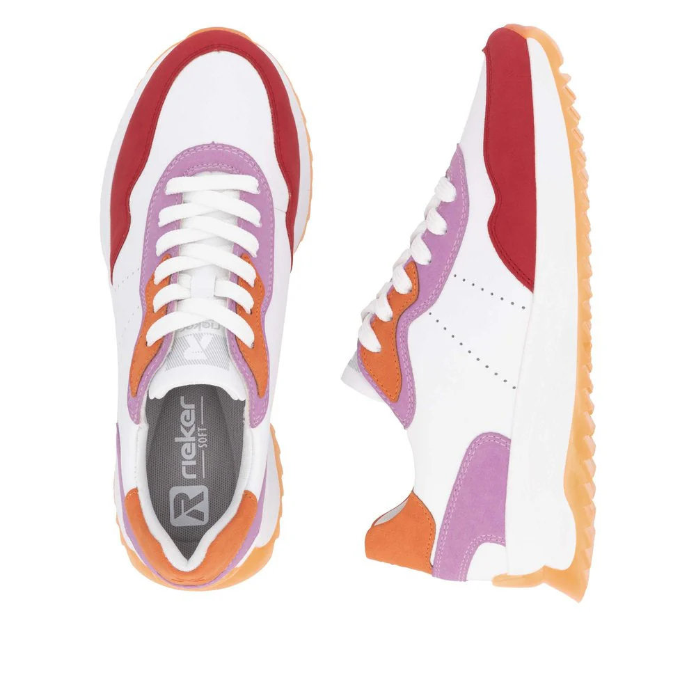 Diese Rieker-Low-Top-Turnschuhe Aus Hochwertigem Glattem Leder. Die Langlebige Und Kräftige-resistente TR-Außensohle Bietet Eine Gute Traktion Und Einen Guten Griff Für Eine Vielzahl Von Oberflächen. Gepolsterte, Abnehmbare Innensohle Mit Dämpfungseigenschaften. Leichte Mikrovelour Und Drysport -Auskleidung Mit Atmungsaktiven Eigenschaften. Die Komfortbreite Garantiert Eine Perfekte Passform.