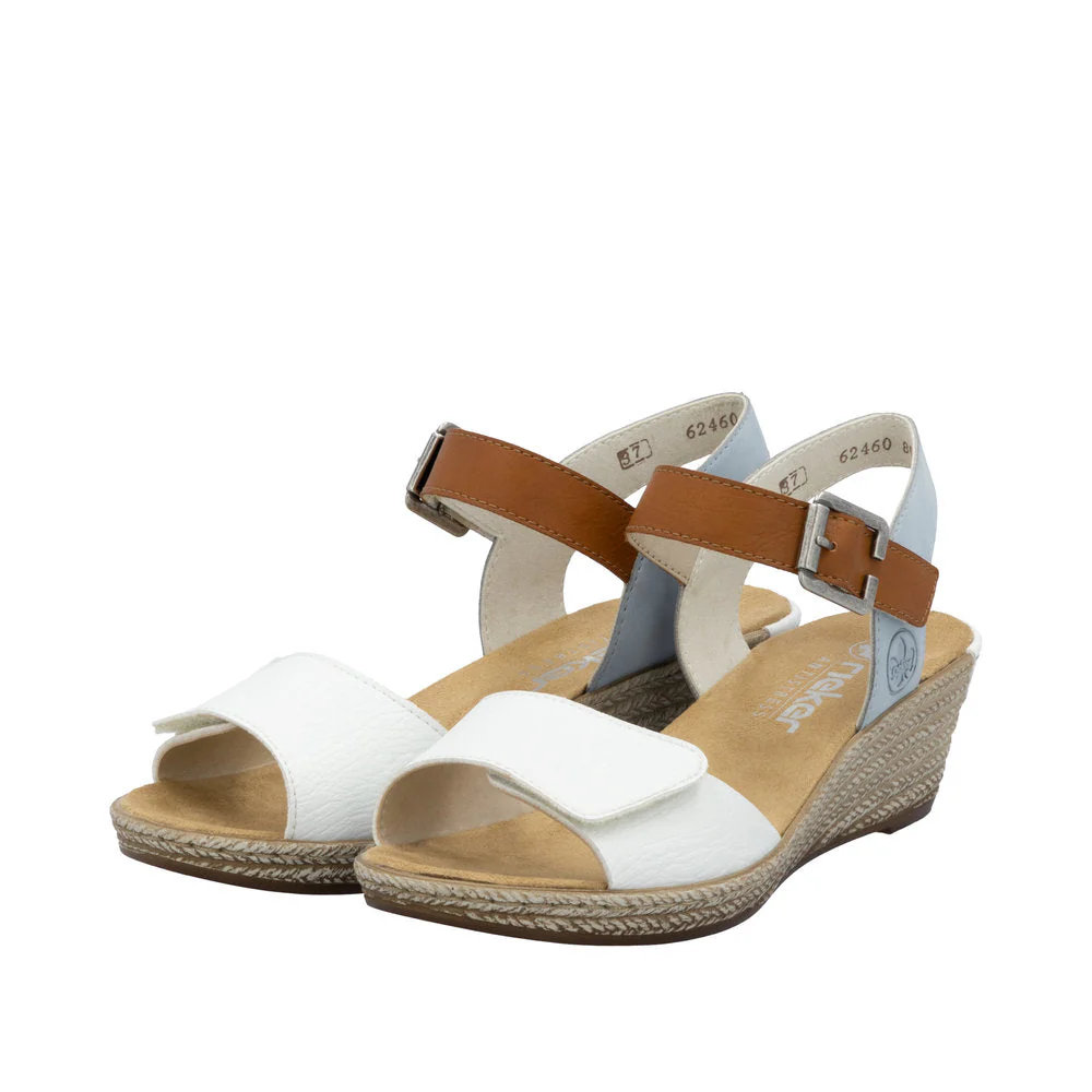 Maximaler Komfort Auf Schritt Und Tritt! Sie Werden In Diesen Weißen Rieker -Keilsandalen Cool Und Lässig Und Lässig Sein. Die Stichkonstruktion Macht Diesen Schuh Zu Einem Besonders Langlebigen Und Flexiblen Begleiter. Ein Doppelhaken- Und Schleifenbefestigungselement Ermöglicht Einen Schnellen Und Einfachen Einstieg. Die Trendige Schnalle Ist Ein Echter Augenfänger. Mit Der Schockabsorbierenden Und Leichten Sohle Mit Keilabsatz Werden Sich Ihre Füße Bei Jedem Schritt Verwöhnt.