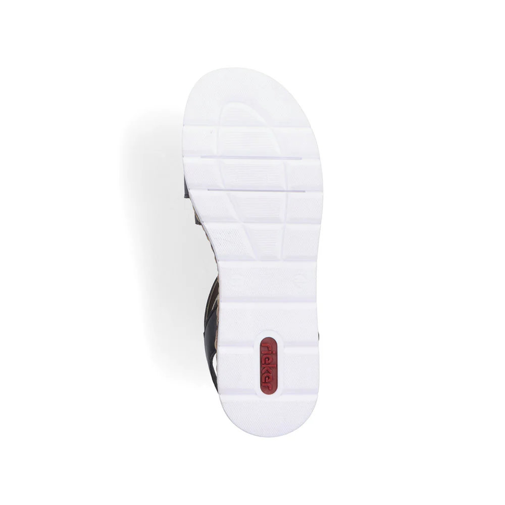 Uzmanība, Tendence Trauksme! Jūs Nevēlaties Noņemt šīs ķīļa Sandales, Kas Izgatavotas No Rikeras Imitācijas ādas. Papēža Siksna, Platās Siksnas Un āķa Un Cilpas Stiprinājums Ir Papildu Plus Punkts, Kas Nodrošina Optimālu Atbalstu Un Papildina Kopējo Izskatu. Trieciena Absorbējošā Un Vieglo Platformu Zole Arī Ar Katru Soli Pukstē Pēdas. Papildus Tam Papildu Mīkstā Pārsega Zole Nodrošina Papildu Komforta Daļu.
