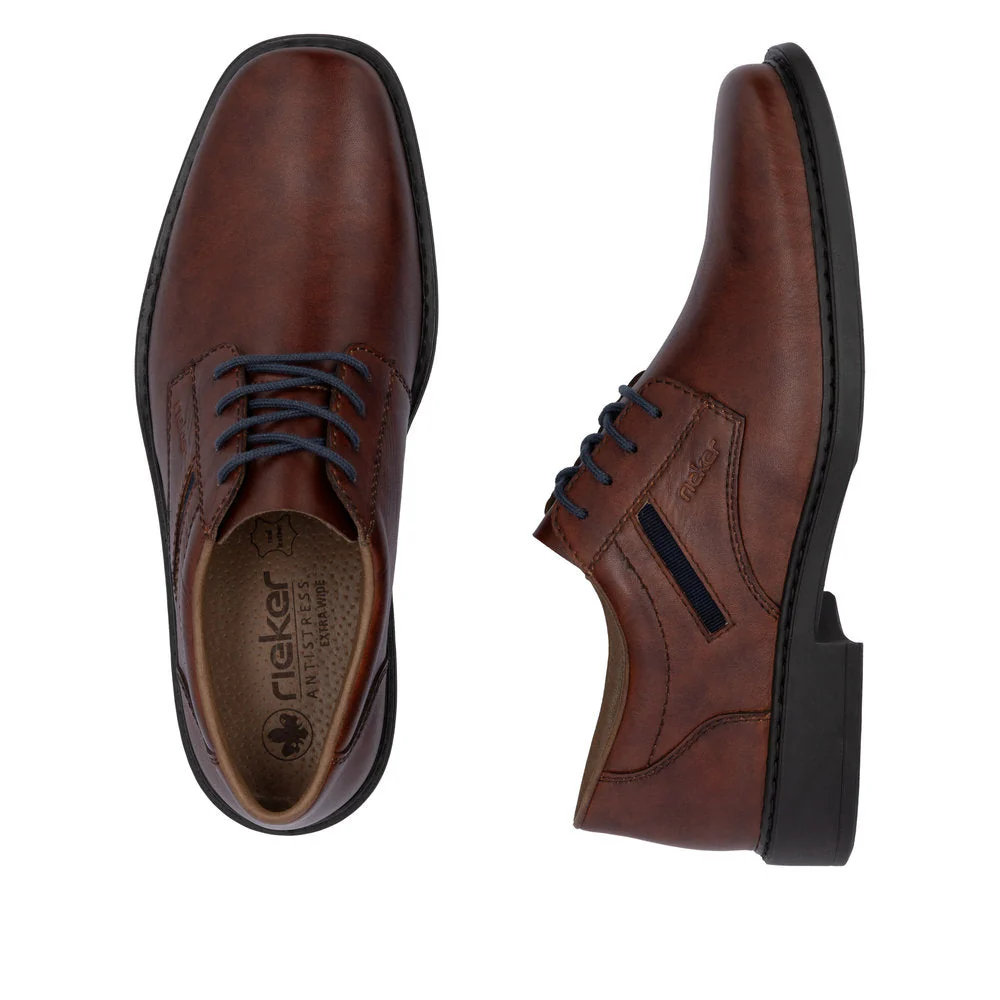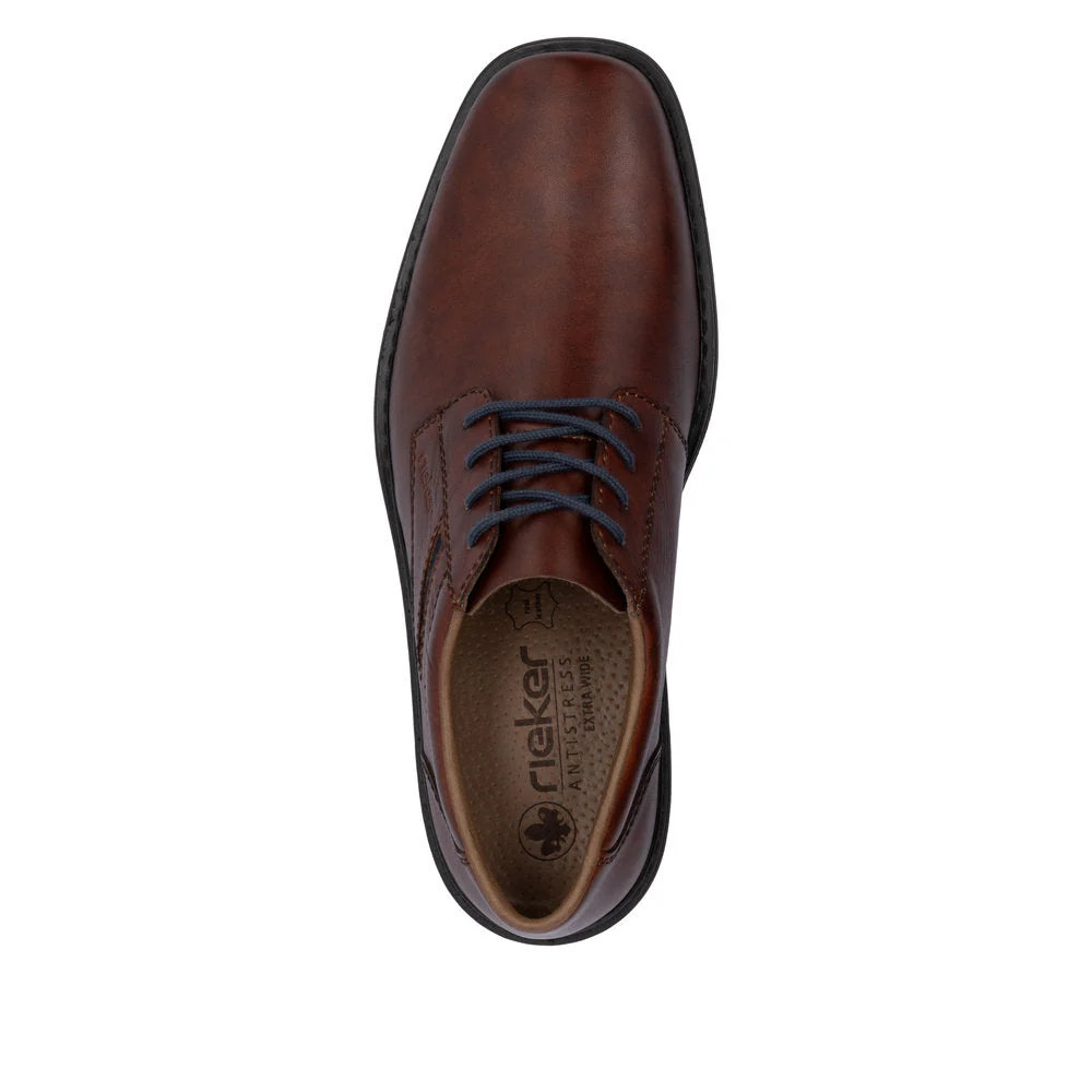 easy walking, easy living! go for maximum comfort and ultimate style with these brown rieker lace-up shoes made of smooth leather. the stitchdown construction makes the shoe robust and the sole particularly flexible without causing damage at the transition to the upper. in addition, the lacing ensures a good fit. the light and shock-absorbing sole ensures a pleasant walking sensation even when worn for a long time, and the extra soft cover sole is another plus. thanks to the comfortable width, there is enough space in the forefoot area. simply top!