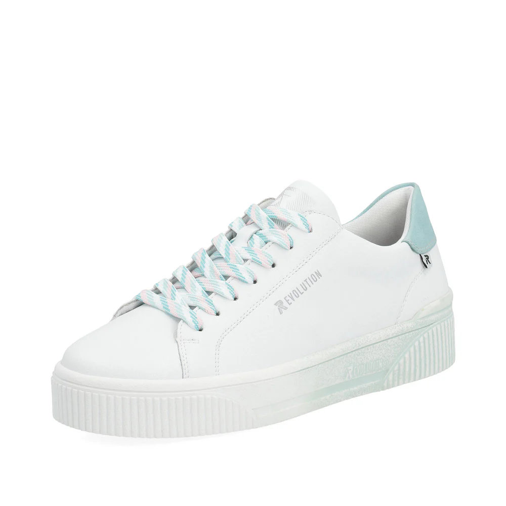 comfortable and practical! these white r-evolution sneakers made of smooth leather for ladies are always the right choice! the white-teal lacing also makes the shoe perfectly adjustable. in addition, exchangeable colored laces are included in the delivery. the sole is grippy and ensures good grip at all times. even more comfort is guaranteed with the padded and removable insole. thanks to the light microvelour lining, ideal comfort is guaranteed. r-evolution of shoes!