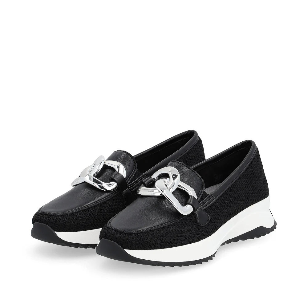 all black - what else? these cool r-evolution loafers are the shoe for every day, because black fits everything! an elastic insert is a great simplification especially when putting on and taking off the shoe. the core of the robust outsole is an eva mid-sole that provides feather-light, cloud-soft walking. moreover, the padded and removable insole is easy to change. thanks to the comfort width , there is enough space in the forefoot area. the shoe is equipped with a breathable microvelour lining. let's go!