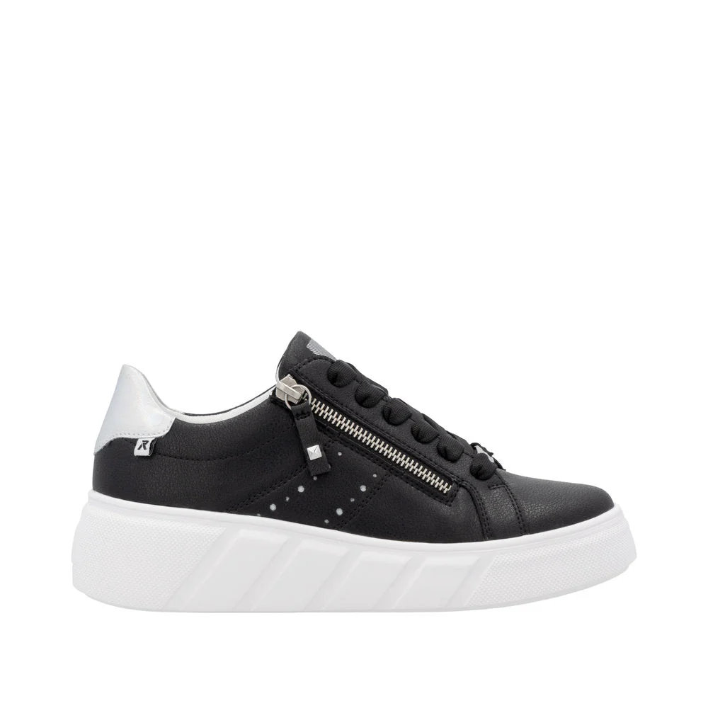 these rieker low-top sneakers are made from high-quality smooth leather. super quick and easy to put on thanks to the top combination of zip and laces. eva outsole with ultra light and flexible properties. padded, cushioning and removable insole. light micro velour and drysport lining with breathable properties.