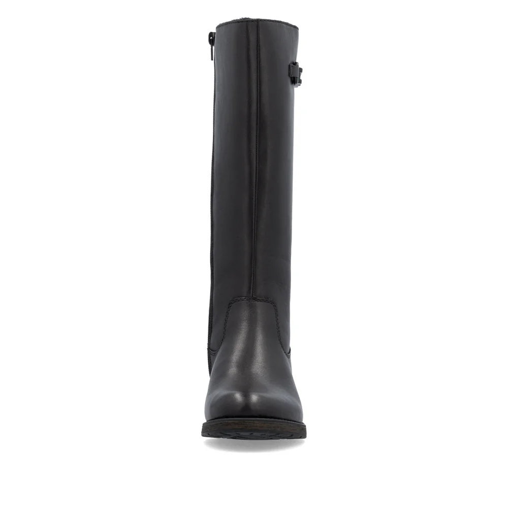 be cool and casual on the move with these night black rieker high boots made of smooth leather. made with the stitchdown construction, the model is robust, flexible and offers a perfect fit. the zipper allows for the shoe to be put on very quickly. their grippy sole with block heel prevents unwanted slipping and the cover sole is extra soft. your feet will stay warm all day long thanks to the soft warm lining. so let's get going.